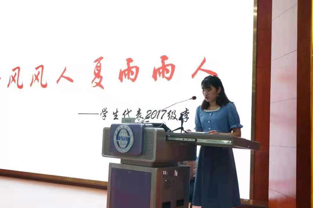 颁发仪式结束后,受助学生代表——2017级的李兰同学上台发表了感言。