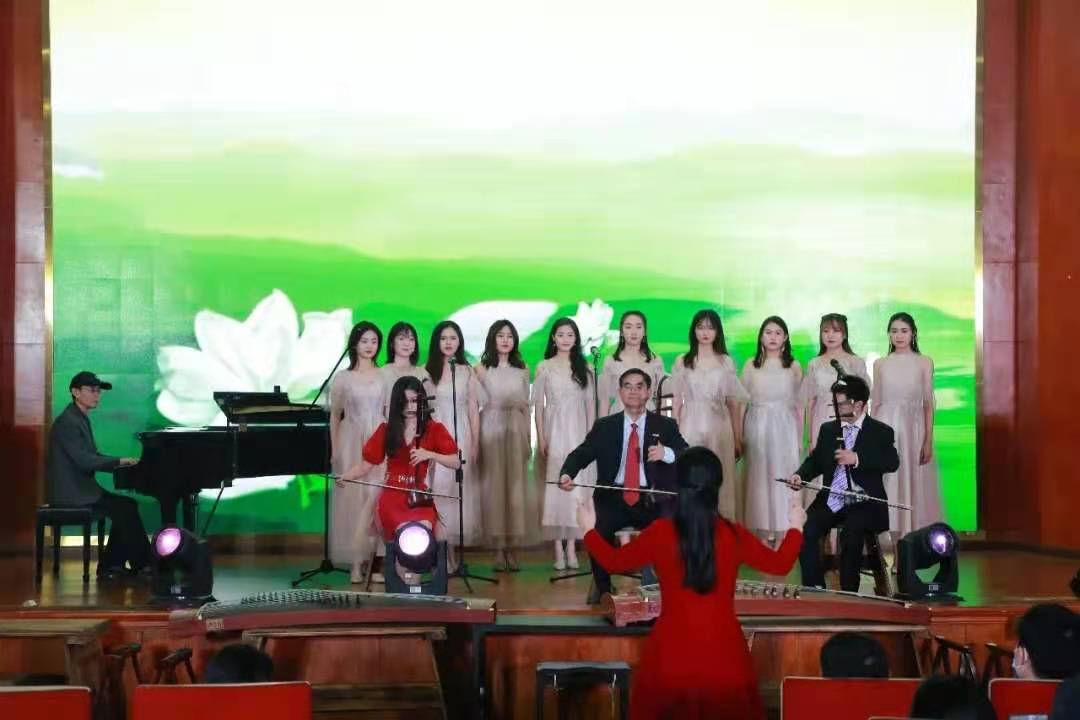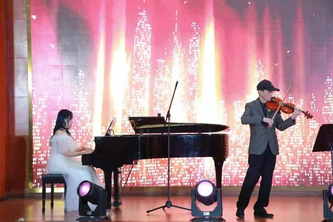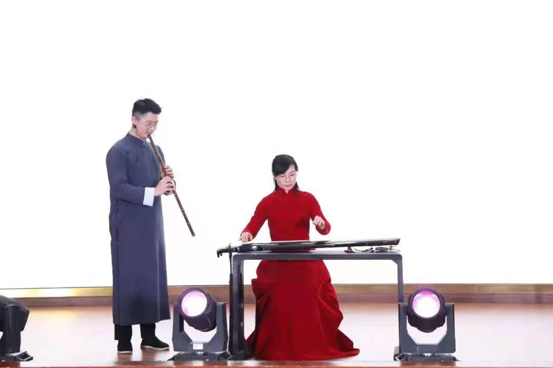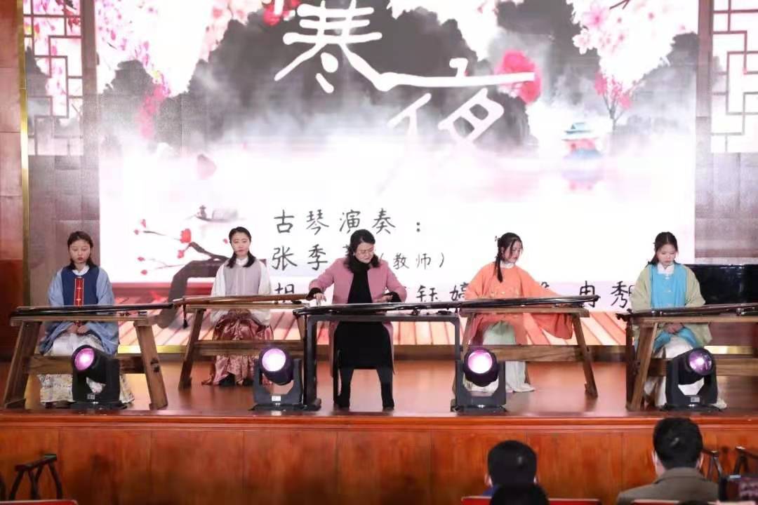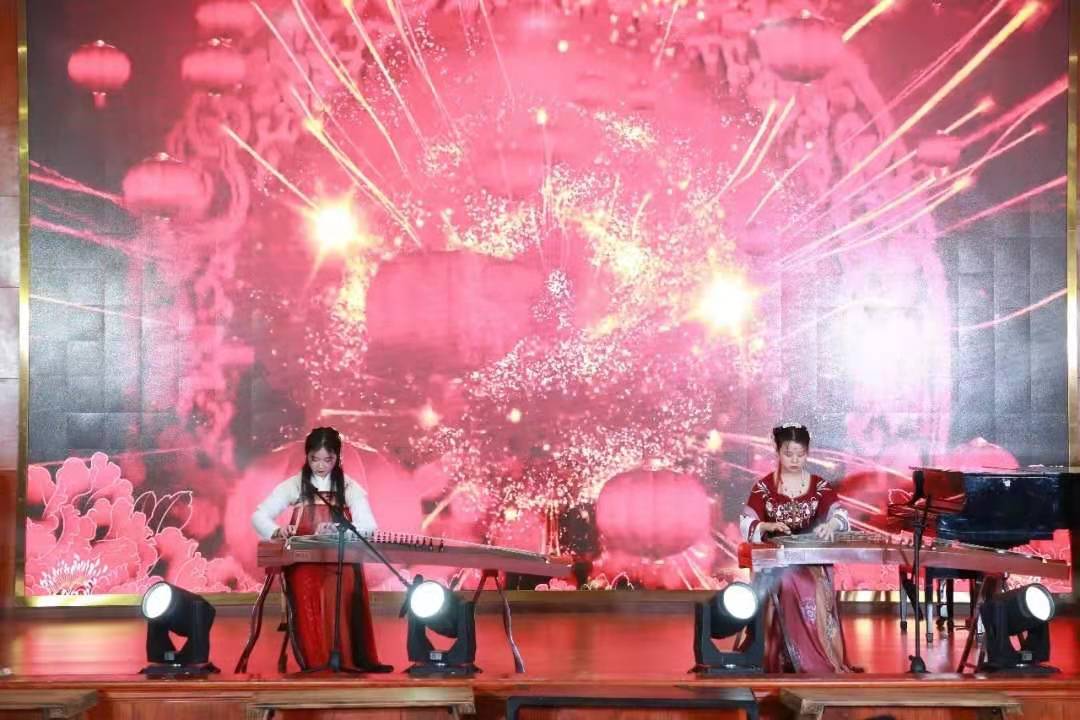 晚会在刘星老师意境悠远的《心游太玄》中拉开序幕,追随典雅的琴箫声韵,倾听静谧的云霭山涧。由张季菁老师领衔表演的古琴《寒夜》,五人联奏、古风浓郁、寂静空幽。《关山月》《酒狂》《古风操》《春节序曲》《彩云追月》等曲目接续上演,曲声悠扬、令人陶醉。京剧《卖水》闪耀着国粹经典的不老传承。二胡曲《千本樱》表现了民族传统乐器与异域风情的文化互动。琵琶曲《大浪淘沙》演绎出历史与命运的无限交织。钢琴曲《浏阳河》经典新弹,勾勒出一幅生动有趣的画面。上半场尾声,李克勇、何天云两位老师时隔十年再次联袂演奏《茉莉花》,现场迅速燃起热烈的掌声,大家在悠扬婉转的二胡曲中回忆十年的光影,展望更加美好的明天。