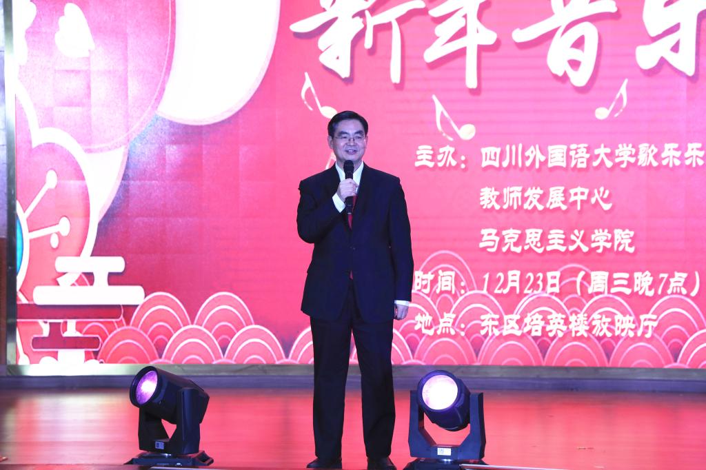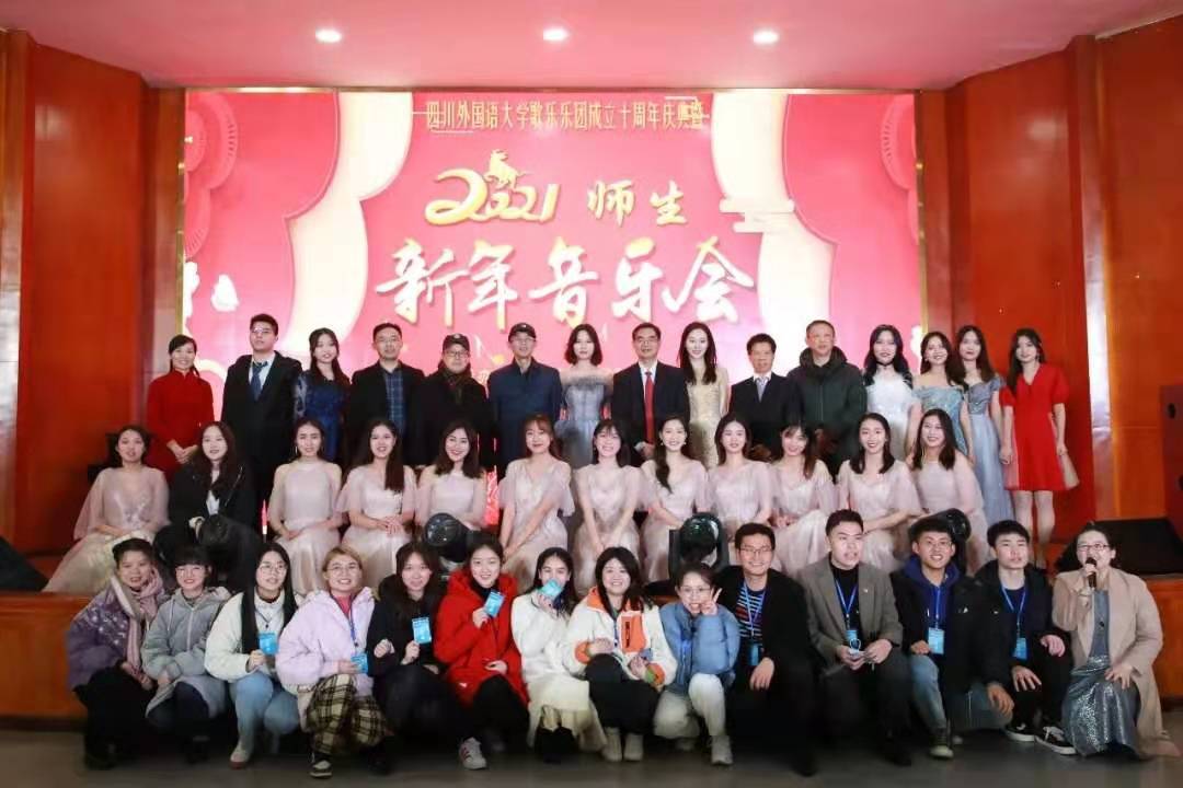 小舞台启航大梦想,忆旧岁谋划新篇章。12月23日晚,为庆祝四川外国语大学歌乐乐团成立十周年,由歌乐乐团、学校教师发展中心、马克思主义学院联合主办的2021新年师生音乐会在学校东区培英楼放映厅精彩上演。学校原校长、歌乐乐团名誉团长李克勇、歌乐乐团原团长何天云、教师发展中心主任张季菁、学校工会常务副主席吴名江、学校工会副主席张琴、中文系党总支书记卢玫、东方语学院党总支书记张露丹、档案馆馆长周正容、离退休处副处长周福兰、歌乐乐团团长、马克思主义学院院长钟谟智等出席晚会。本场晚会同时以网络直播方式与音乐爱好者一道共享视听盛宴。