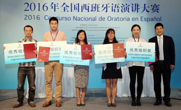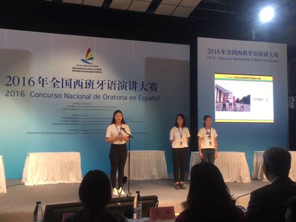 2016年9月23至24日,全国西班牙语演讲大赛总决赛在中央民族大学民族剧院小剧场举行。此次大赛由中国对外文化集团公司和北京外国语大学主办,北京外国语大学西葡语系、外语教学与研究出版社、北京中演环球艺术制作有限公司承办,教育部高等教学专业教学指导委员会西班牙语分委会作为学术支持单位,旨在为中国大学生群体全面深入地宣传、介绍拉美国家的国情文化,借此展现西班牙语的语言魅力,让更多的青年参与到2016“中拉文化交流年”的文化盛宴中。