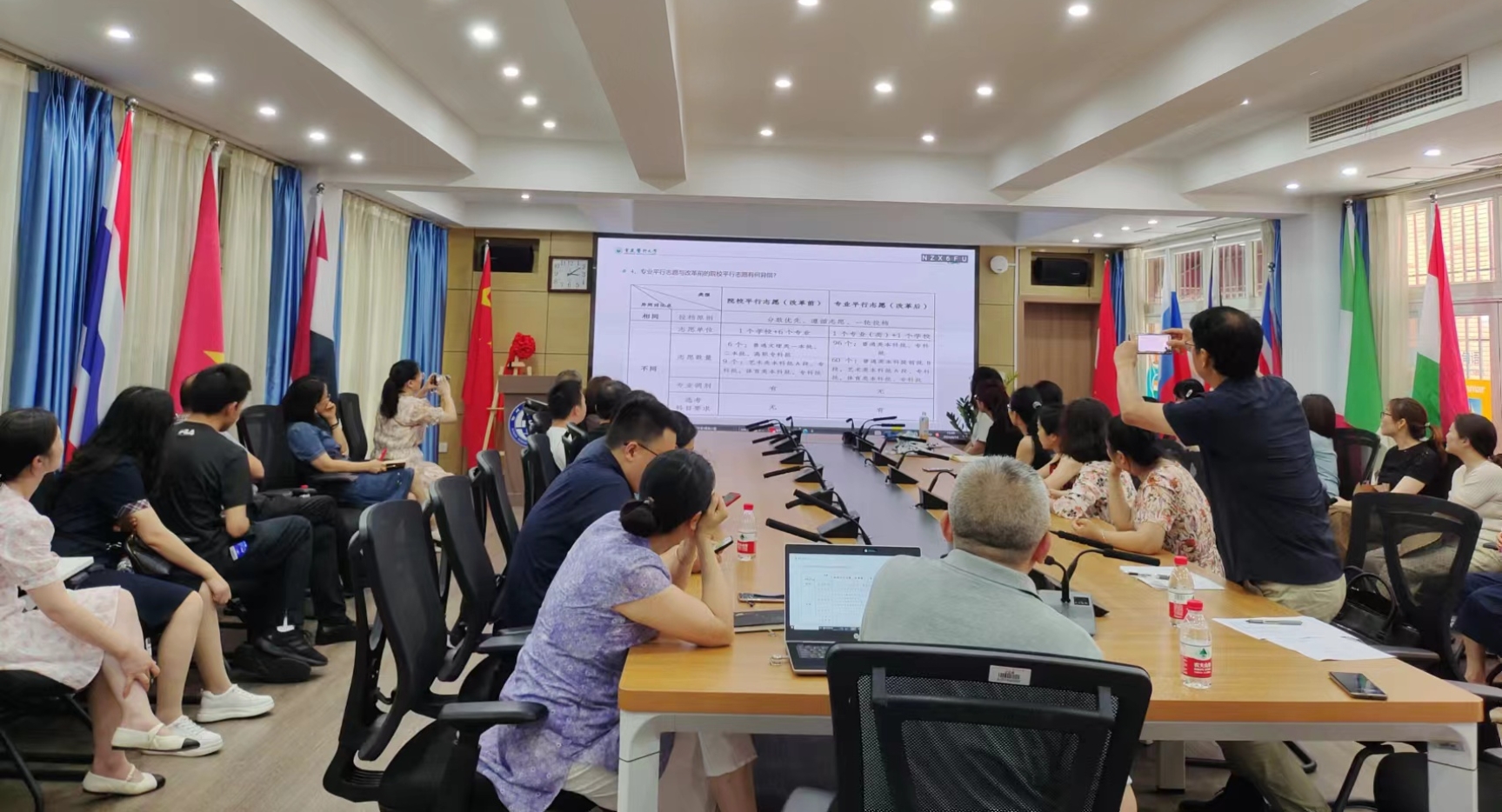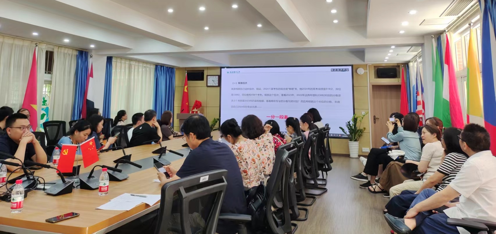 颜黎老师为教职工解读新高考分数的计算方式、招生类型与批次,讲解了如何帮助学生选择适合的专业、高考志愿的录取规则、高考志愿的风险防范、填报实操流程和细节等多方面内容。