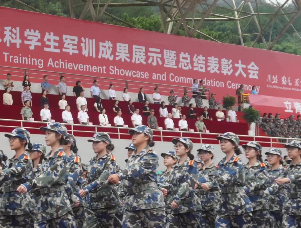 歌乐山下丹桂飘香,川外学子气宇轩昂。14天的军训,新生们圆满完成“大学第一课”。他们将把军训所感所悟、所炼所获转化为学行川外的奋进力量,以赤诚之心传承红岩薪火,以语言之桥联通世界文明,把个人价值与社会价值统一起来,把个人理想融入强国征程,以青春之我、奋斗之我,为中华民族伟大复兴添砖加瓦。