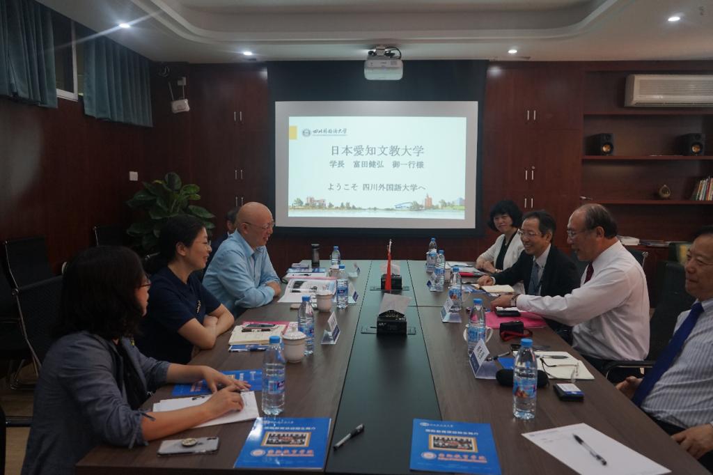 2019年4月24日,日本足立学园爱知文教大学校长富田健弘、爱知文教大学事务局局长铃木雅之、爱知文教大学特任教授郝志强等一行到访我校,以推进中日留学生互换、“2+2”留学等项目进行了友好的会谈。我校李小川副校长、国际教育学院曾传芳院长、前东方语学院院长罗国忠教授等参加了会见。