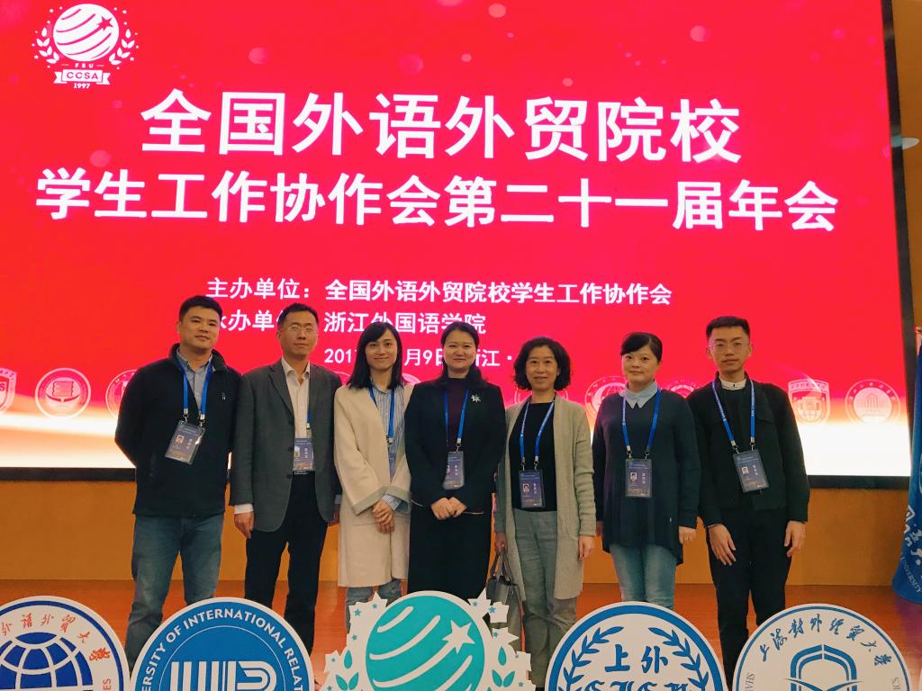 9日,张季菁副校长一行参与了由浙江外国语学院承办的全国外语外贸院校学生工作协作会第二十一届年会。此次年会以“立德树人,规范管理,外语外贸院校学生思想政治工作创新模式探索”为主题。会上,我校作了题为“坚持立德树人深耕四大平台 构建新时代思政工作体系”的发言,向兄弟院校展示了我校学生工作的新提法、新做法。