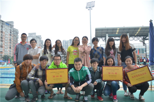 由重庆市教委主办的2015年重庆市大学生游泳比赛于9月26日在西南政法大学渝北校区游泳池落下帷幕,我校游泳队夺得女子甲组(普通大学生)第三名、男子丙组第四名,同时被大会评为体育道德风尚奖先进集体。游泳