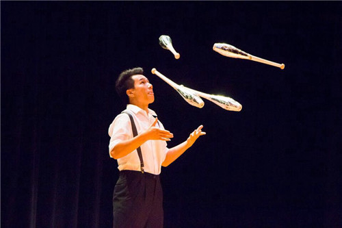 校长发表了精彩而诚挚的欢迎辞。开场舞《水姑娘》喜庆的气氛迅速将现场观众带入中国模式,川剧《花云射雕》运用了川剧绝技“变胡子”以及浪漫的“牵眼线”表现手法,使美国观众忍俊不禁。由重庆民族乐团演奏家带来的二胡和琵琶协奏《梦回巫山》带给美国观众与西洋乐器不一样的听觉体验。演奏家们轻拨丝弦,琴声悠远绵长,勾勒出云雾暮霭中巫山的清幽神秘,观众陶醉其中。杂技《力量》、《手技》的绝活演出,赢得观众们的阵阵赞叹!重庆川剧院的《变脸》将节目推向高潮,神奇无比、极具视觉冲击力的变脸获得无数掌声和欢呼。