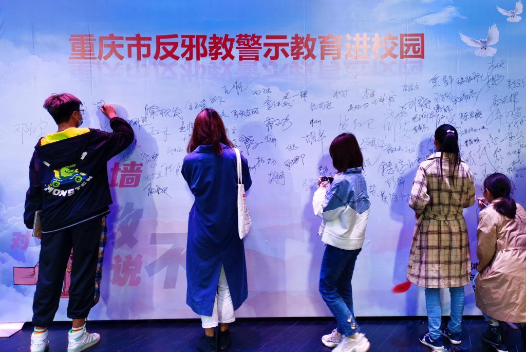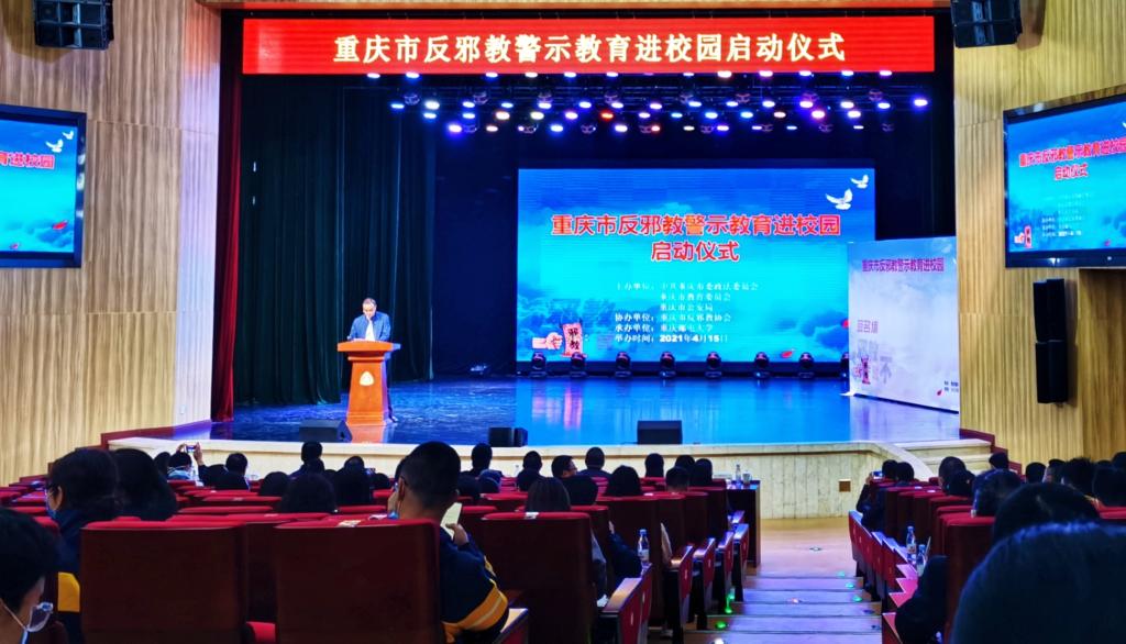 为进一步扩大反邪教宣传进校园系列活动的社会影响力,加深高校师生对邪教特征和危害的认识,提升广大师生识别和抵御邪教的意识和能力,2021年4月15日,我校师生代表共11人参加了在重庆邮电大学举办的“重庆市反邪教警示教育进校园启动仪式”。重庆市政法委、市教委、市公安局、市反邪教协会、南岸区政法委、南岸区教委、南岸区公安分局和重庆邮电大学相关领导及负责人,以及重庆大学、西南政法大学、重庆师范大学等部分高校的师生代表参加了此次启动仪式。