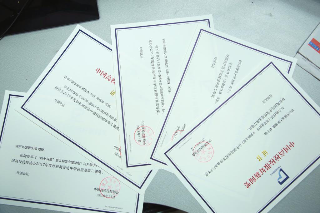 年会上,2017年中国高校校报好新闻评选获奖作品揭晓,共有到来自29个省市自治区的665所高校报送的3321篇作品参评。我校共申报6篇作品,5篇获奖,获奖数量居重庆高校第一。其中,《京昆盛世情 余韵满山城》(熊鹰、赵小秋)获通讯类二等奖;《“四个自信”怎么翻出中国特色?川外学子11语种告诉你》(陈挚)获消息类二等奖;《当大学生 遇上“双十一”》(安兰)获言论类三等奖;《我校18名来华留学生长寿湖畔体验汉式成人礼》(苏锐)获新闻摄影类三等奖;《川外版<春风十里>|我说所有的景,都不如你》(杨成杰,刘丹,程铭康,苏锐)获新媒体类三等奖。