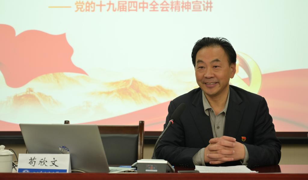 12月12日,纪委书记苟欣文为纪检监察室、党委宣传/统战部(党委教师工作部)、新闻传播学院、俄语系、日语系、德语系教职工宣讲党的十九届四中全会精神。
