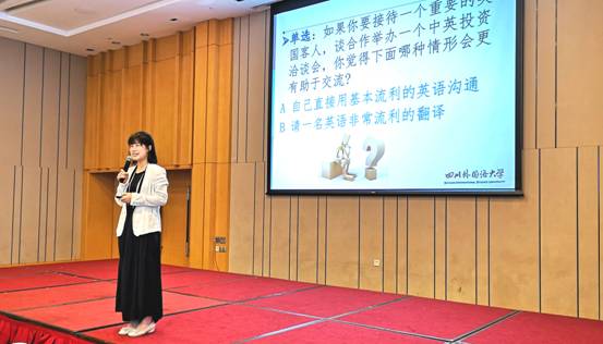 我院教师许劲、呙小明两位博士分别做了《当前国际经济形势及热点经贸事件解读》及《跨文化商务沟通技能》的专题报告。许劲介绍了当前国际经济总体形势、与“一带一路”沿线国家经贸合作现状,结合中美贸易冲突等经贸热点事件的解析,对当前的外经外贸面临的挑战和机遇进行了全方位的剖析和阐释。以对外工程承包为例,基于最新科研成果分析了“一带一路”沿线国家投资的国别选择影响因素及区位选择,有针对性地指出了对外经济合作的路径和策略以及对外工经贸合作需注意的问题,受到与会人员的广泛赞誉。呙小明从着装技能、交流技能、行为技能、观念技能等方面分析了在不同文化语境下跨文化商务沟通的必杀技,结合具体跨文化交际案例,针对与重庆交往密切的若干国家进行讲解,期间跟与会者互动交流,现场气氛十分活跃。其他讲座专家就重庆市对外投资及经济合作的有关政策及境外投资的风险防范和危机管理等议题进行了报告。