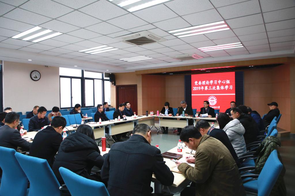 3月7日上午,我校党委理论学习中心组举行集体学习会,围绕习近平总书记有关扶贫工作重要论述,《中共中央关于加强党的政治建设的意见》,《中国共产党支部工作条例(试行)》,《中国共产党重大事项请示报告条例》,《干部人事工作条例》,陈敏尔、唐良智同志在全市经济工作会议上的讲话等内容,结合我校实际工作开展深入学习和交流发言。党委书记明国辉主持会议。