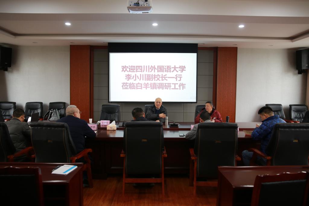 李小川一行还走访了白羊镇的小学和中学,两所学校的校长分别介绍了本校的外语课程开展和外语教师配备的情况后,李小川副校长提出两点建议:“一是把教师送上去——欢迎两校校长和教师代表到川外学习交流;二是要把教师派下来——选择川外优秀的教师和研究生到当地的两所学校实习,丰富和充实白羊镇的教育资源。”