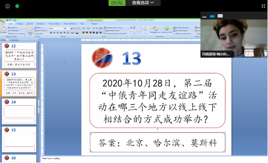 本届演讲大赛注重学生的知识面以及口语表达能力,为学生提供了展示自我汉语水平的平台,提高了学生学习汉语和使用汉语的积极性,激发了学生关心中俄两国时事的热情。