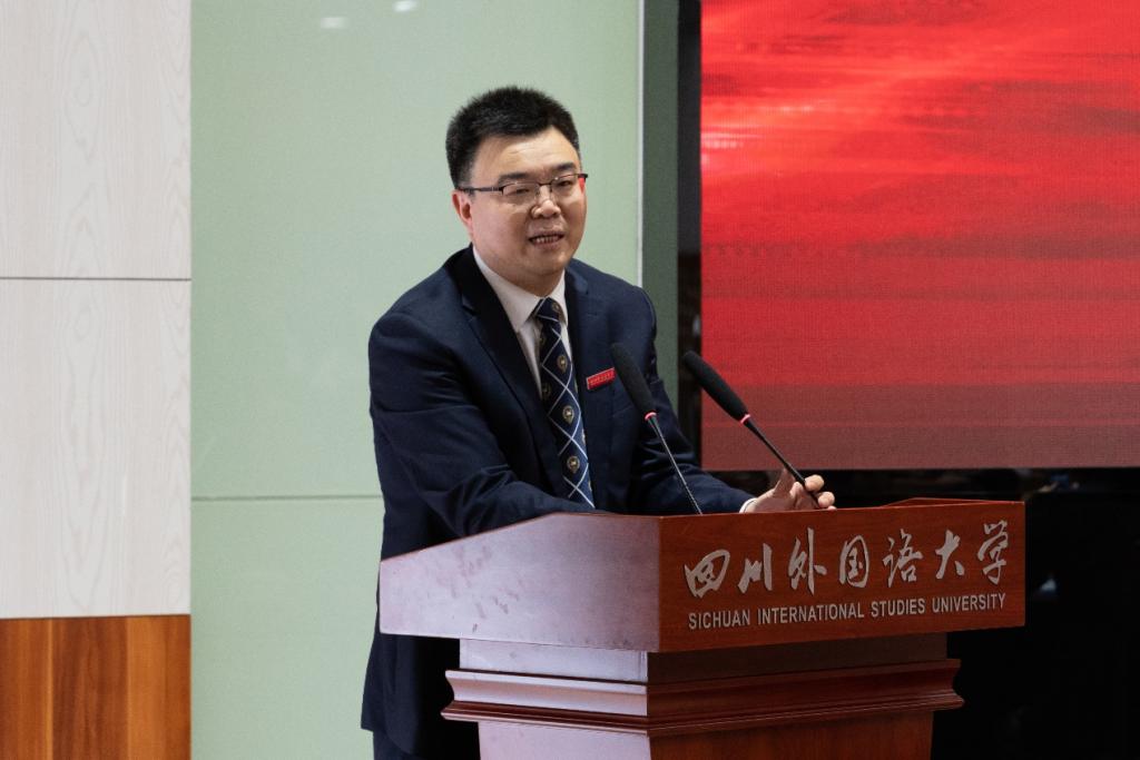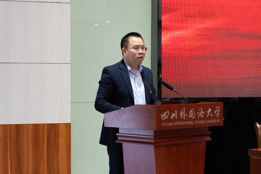重庆市社科联规划评奖办公室主任唐旺虎介绍了近年来重庆市社科项目建设、社科评奖取得的成绩,指出规划办利用多方合作,多种举措,不断推动重庆市社科事业发展,提升学术研究水平。他对高校科研项目建设提出了“牢固树立质量意识、抓好规范管理、打造社科事业学术共同体”等要求,并具体介绍了区域国别研究项目申报、推进的情况,指出应放眼世界,拓展研究领域,凸显研究特色,推动外语学科学术研究可持续发展。
