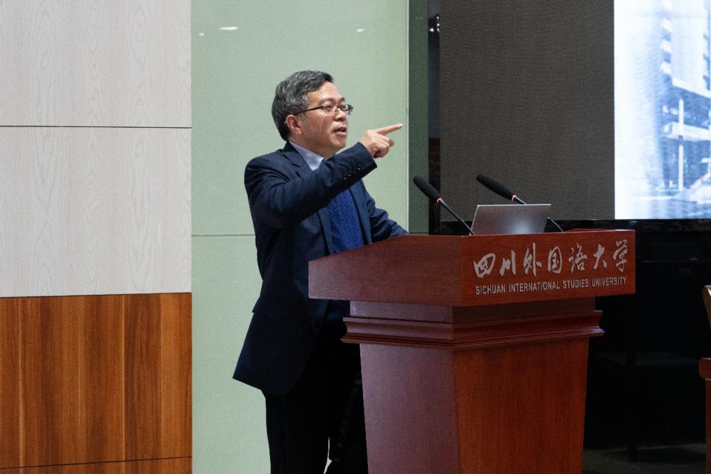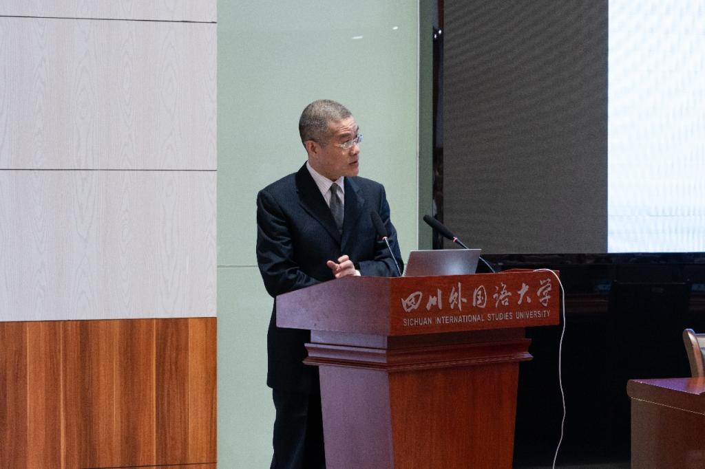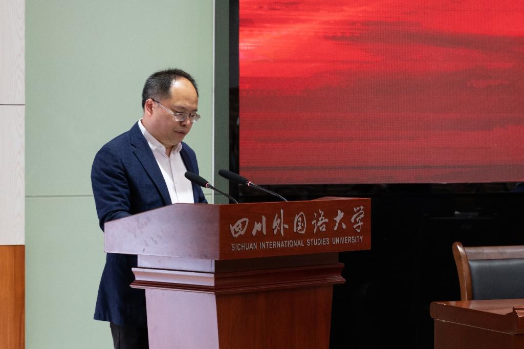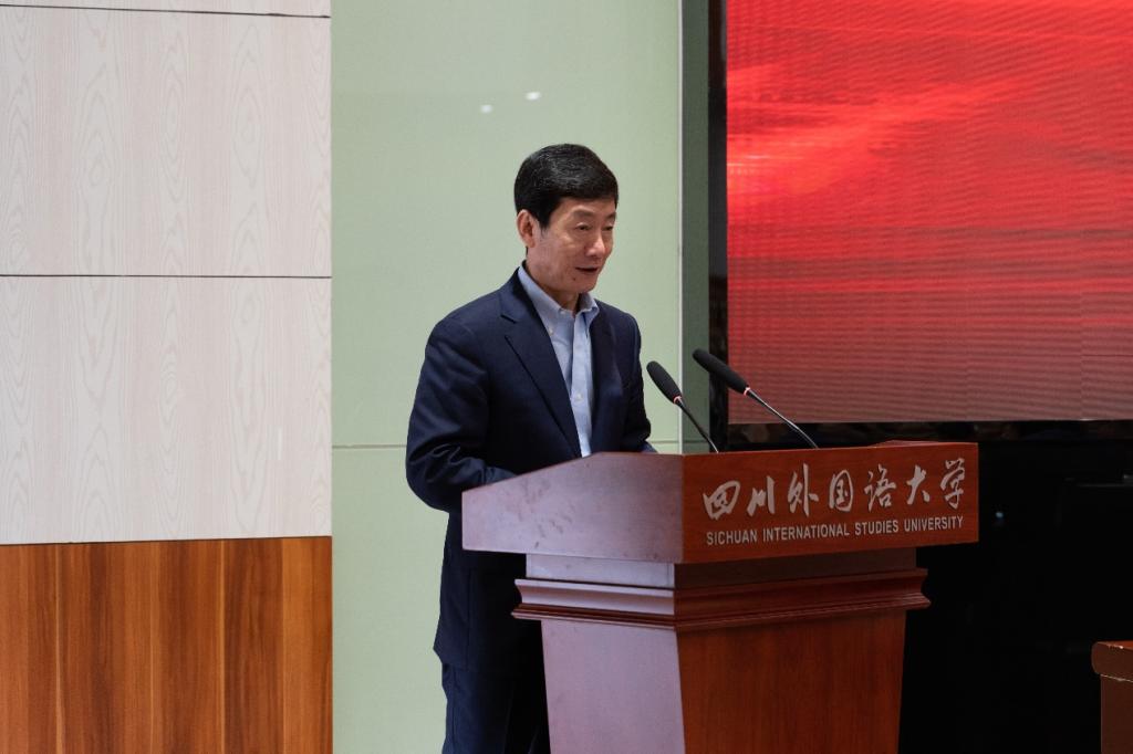 校长董洪川在开幕致辞中欢迎各位领导、专家、老师的到来,并从大学使命、学科建设、学术研究、教师成长等方面深入阐释了开展区域国别研究的重要性。他指出,“求真是追求永恒的真理,务实是提高学生的素质”,求真和务实是研究的基础,教学与科研密不可分。他强调,高等教育要与中华民族伟大复兴战略全局和世界百年未有之大变局相结合,区域国别研究对于高校培养面对未来的国际化复合型高端人才,具有重要意义。