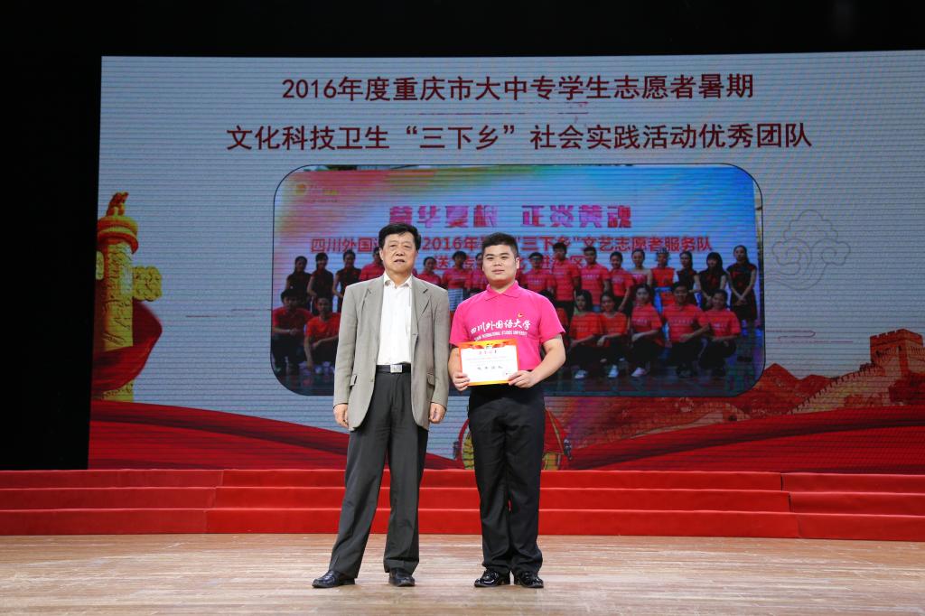 我校党委宣传统战部部长崔光军为我校“三下乡”先进个人代表饶玲等人颁发2016年度重庆市大中专学生志愿者暑期文化科技卫生“三下乡”社会实践活动先进个人奖项