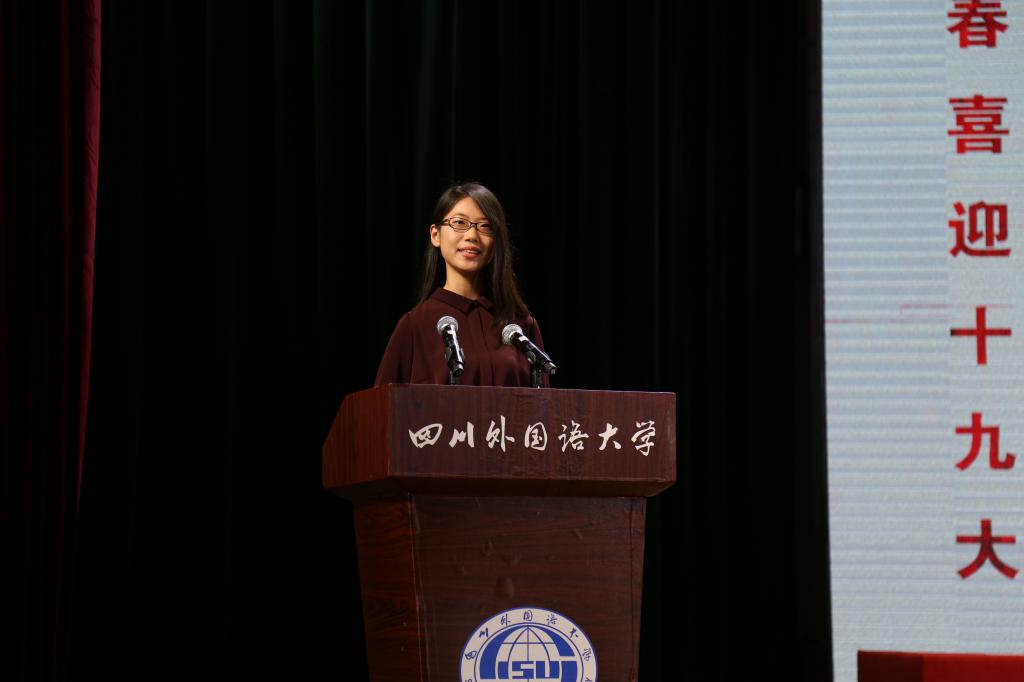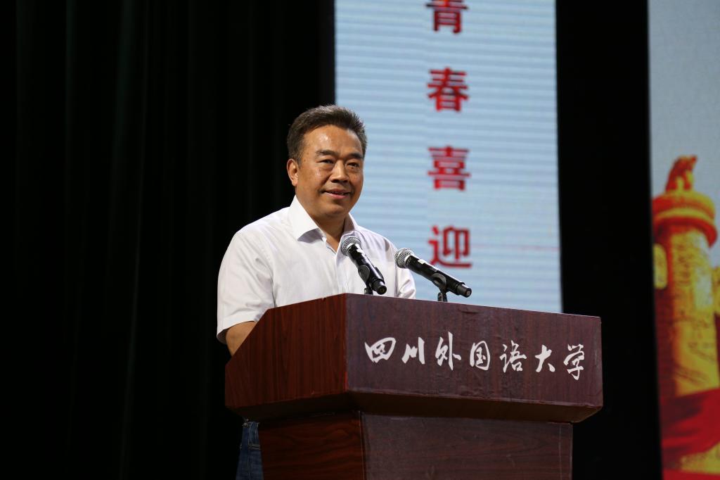 党委书记明国辉发表讲话。他表示,我校一直坚持内涵发展,全面提高高等教育质量。他指出,在对外开放格局下,我校主动契合国家和重庆市经济社会发展战略,着力培养兼备专业知识和两门以上外语能力的“复语复合型”人才,以服务国家社会发展需要。他希望青年大学生们不断发扬向上向善的精神力量,努力成长为国家社会需要的人才。