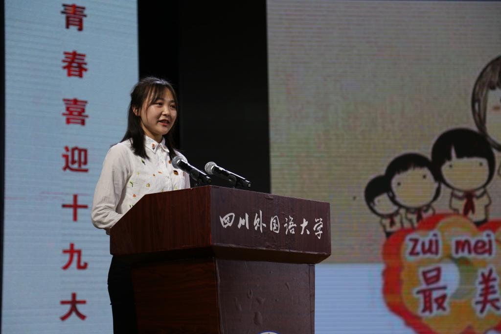 中文系2013级本科生、推荐免试攻读复旦大学研究生、2016年四川外国语大学红岩十佳青年勤奋好学好青年代表:冯鲸洁