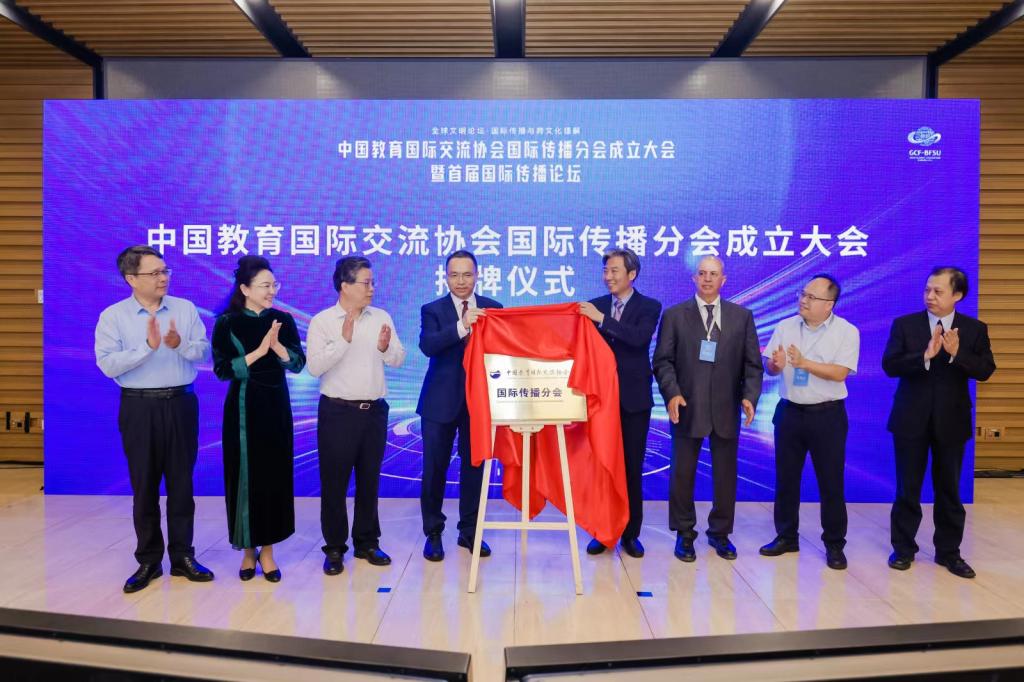 严功军副校长与北外领导、协会理事长等共同为国际传播分会成立揭牌