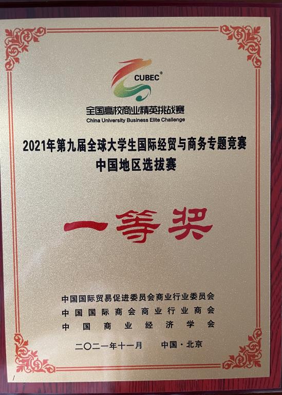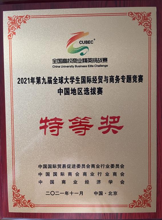 为促进与全国高等院校经贸专业之间的交流与合作,提升大学生国际经贸与商务专业知识综合运用水平和学术研究能力,我校国际金融与贸易学院积极组织学生报名参加了2021年第九届全国大学生国际经贸与商务专题竞赛。11月18日,中国地区选拔赛公布比赛最终结果,我校取得了优异可喜的成绩,其中本科生4组分别荣获特等奖一项、一等奖一项以及二等奖两项;研究生组3组分别荣获一等奖一项、二等奖一项以及三等奖一项。此外,我校还获得了最佳院校组织奖。