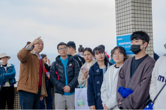 讲座后,黄河老师带领大家前往鹅岭公园。登上瞰胜楼,俯瞰整个重庆,学生们无不感到心旷神怡。漫步石绳桥,抚摸石杆栏饰,学生们无不驻足流连。