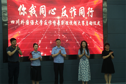 6月14日,四川外国语大学“你我同心,反诈同行”短视频大赛启动仪式暨发布会在歌乐楼A栋三楼报告厅举行。本次大赛由学校党委保卫部、党委宣传部、党委学生工作部、校团委、沙坪坝区童家桥派出所主办,国际法学与社会学院承办。我校副校长卢波,相关职能部门、各二级学院负责人,学生组织代表以及沙坪坝区公安局、沙坪坝区童家桥派出所的代表等近百人参加了启动仪式。