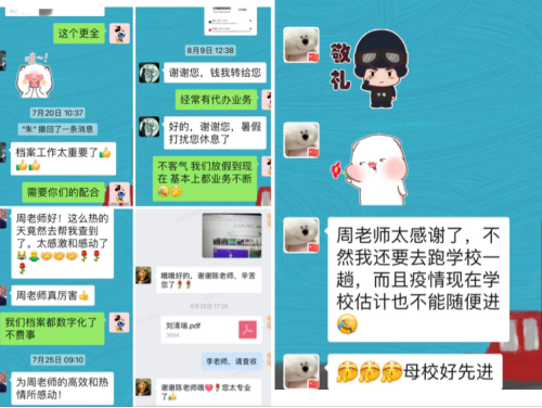 受疫情影响,档案利用者更多借助远程查档和电话咨询两种方式,电话咨询和交流的数量上升,对暑期档案工作提出了更高的要求。档案馆工作人员发扬乐为人梯甘于奉献的孺子牛精神,全力查找所需的各类档案材料。“档案馆老师热情周到的服务,让毕业多年的我再次感受到了母校的温暖”一位校友动情地说。