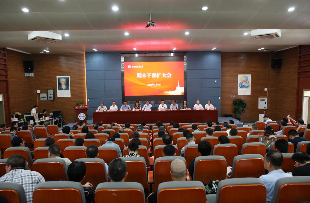 7月6日,学校2023年春季学期期末干部大会召开。全体校领导、中层领导干部,市区级人大代表、政协委员和民主党派统战团体负责人,全体组织员、科研平台负责人、科级干部、辅导员参会。会议由党委书记邹渝主持。