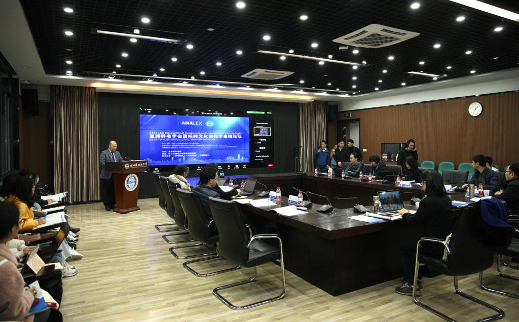 12月10日至11日,亚洲辞书学会国际跨文化词典学高端论坛在我校举行。本次论坛由亚洲辞书学会主办,四川外国语大学词典学研究所承办,《辞书研究》《英语研究》和《外国语文》提供学术支持。来自日本、新加坡、波兰、南非、以色列和中国的11位词典学专家通过ZOOM平台作了精彩的主题发言,重庆市内高校代表及四川外国语大学部分师生在立德楼C117线下聆听了专家报告。受疫情影响,重庆以外的与会专家或代表通过线上方式参与本次论坛,其中国外或境外专家代表来自日本的早稻田大学、京都大学、名古屋大学和关西大学、新加坡南洋理工大学、俄罗斯人民友谊大学、马来西亚理科大学、马来亚大学、葡萄牙新里斯本大学、泰国华侨崇圣大学、香港理工大学、香港教育大学、澳门大学等16所高校,境内专家代表来自北京大学、复旦大学、中国人民大学、华东师范大学、广东外语外贸大学、吉林大学、四川大学、厦门大学等99所内地高校以及外语教学与研究出版社、上海外语教育出版社、复旦大学出版社等5家出版机构。