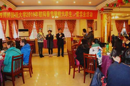“你们是川外优秀学生的代表,你们并不孤单,新春佳节我们欢聚一堂,希望你们在这里感受到川外大家庭的温暖!”