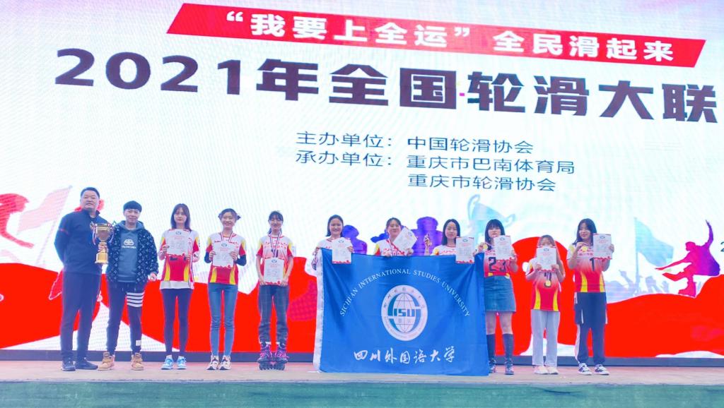 轮滑队师生团结一心,顽强拼搏。川外女队连续作战与上届冠亚军队伍相持胶着,并在开始落后的情况下奋起直追,最后以1分的优势险胜,取得胜利。女队夺冠后,男队全员备受鼓舞,士气大振,奋勇拼搏战胜了上届冠军轮滑队。队员们相互鼓励,不畏艰辛,最终获得了高校女子组团体冠军,高校男子组团体亚军的好佳绩,这是川外轮滑队历史性的突破。