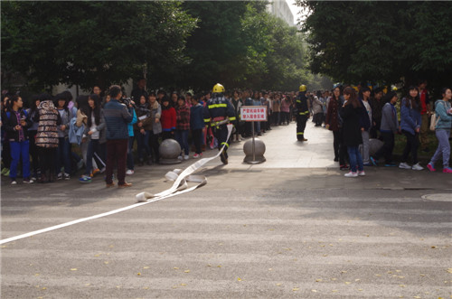 为进一步加强学生公寓安全保障工作,增强学生的消防安全意识,提高大学生对火灾的紧急应变能力,构建平安校园和和谐校园,11月27日中午12点,由四川外国语大学后勤集团、保卫处、学生处和重庆市消防特警第二支队联合主办,学生公寓管理科、大学生党员示范岗承办的学生公寓消防安全知识宣传暨消防演练活动在我校西区学生公寓有序展开。全校学生公寓各楼层长、松苑一、二舍全体学生,以及各院系师生近3000人参加了此次活动。