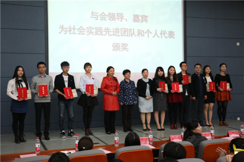 心得分享会第一场 与会领导向社会实践先进集体和个人代表颁奖
