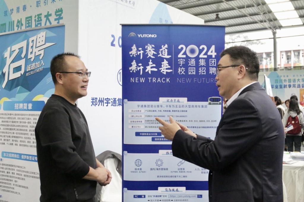 2023年10月13日,学校2024届毕业生首场双选会在西区风雨操场成功举办。本次双选会以“筑梦青春,职引未来”为主题,经过两个多月的筹备,成功邀请到120多家企业参加招聘活动,提供了4000余个优质就业岗位,就业岗位凸显外语外贸服务等国际化特色,涵盖信息技术、新能源、生物医药、教育培训、国际物流、跨境电商等多个行业。