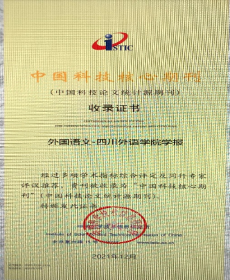 中国科学技术信息研究所通过多项学术指标综合评定和同行专家评议推荐,《外国语文》被收录为“中国科技核心期刊”(中国科技论文统计源期刊)。