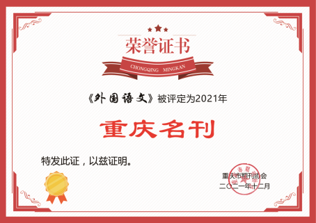 重庆市期刊协会经过充分研究论证,根据不同类型期刊的特征与可比性,将市内期刊分为学术期刊、非学术期刊,设定科学、合理、公正的评审指标,《外国语文》被评定为2021年“重庆名刊”。