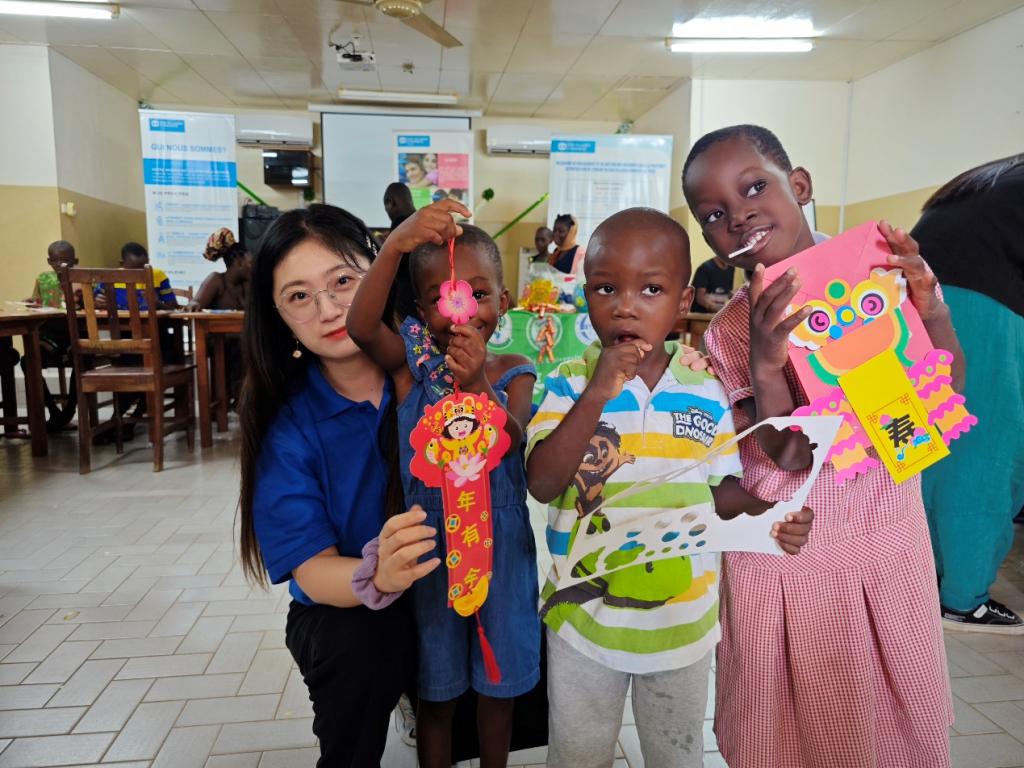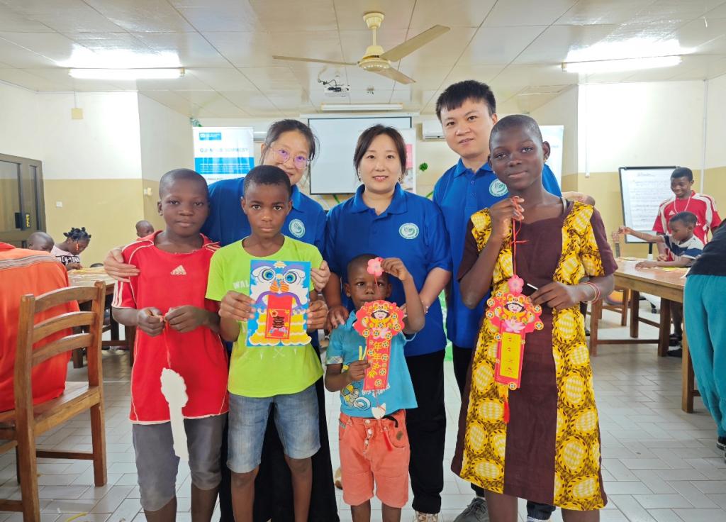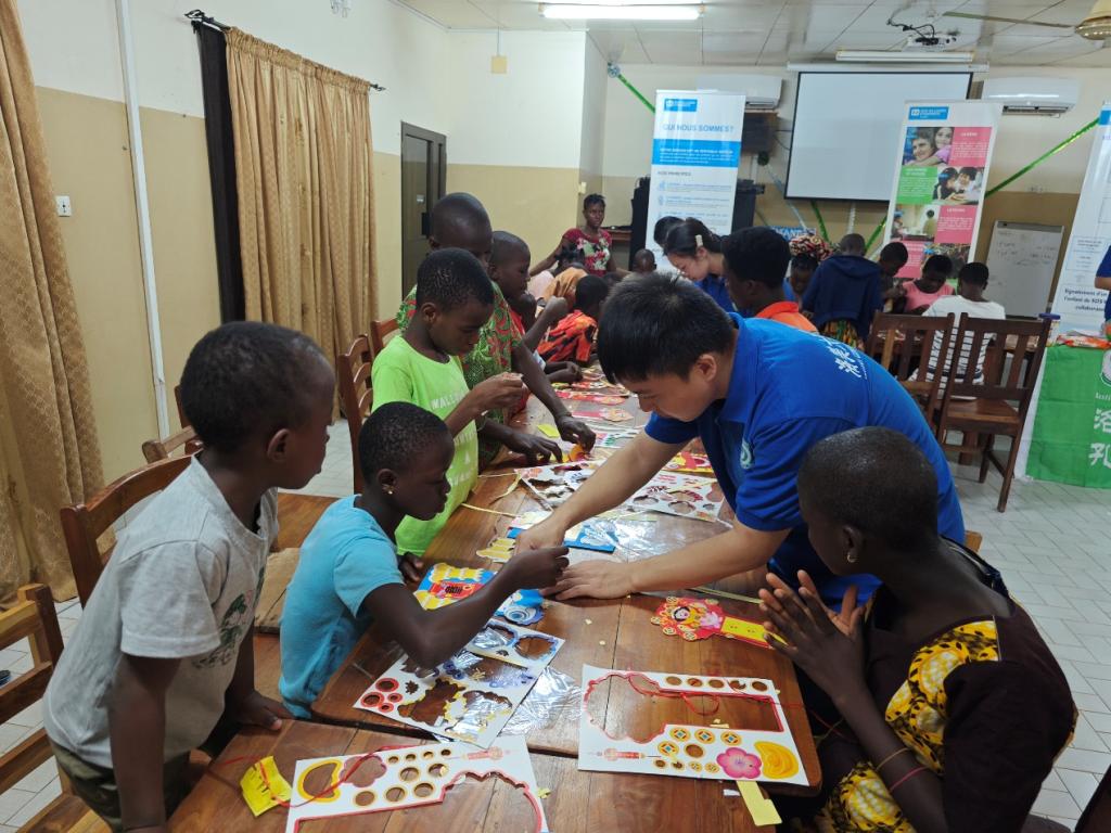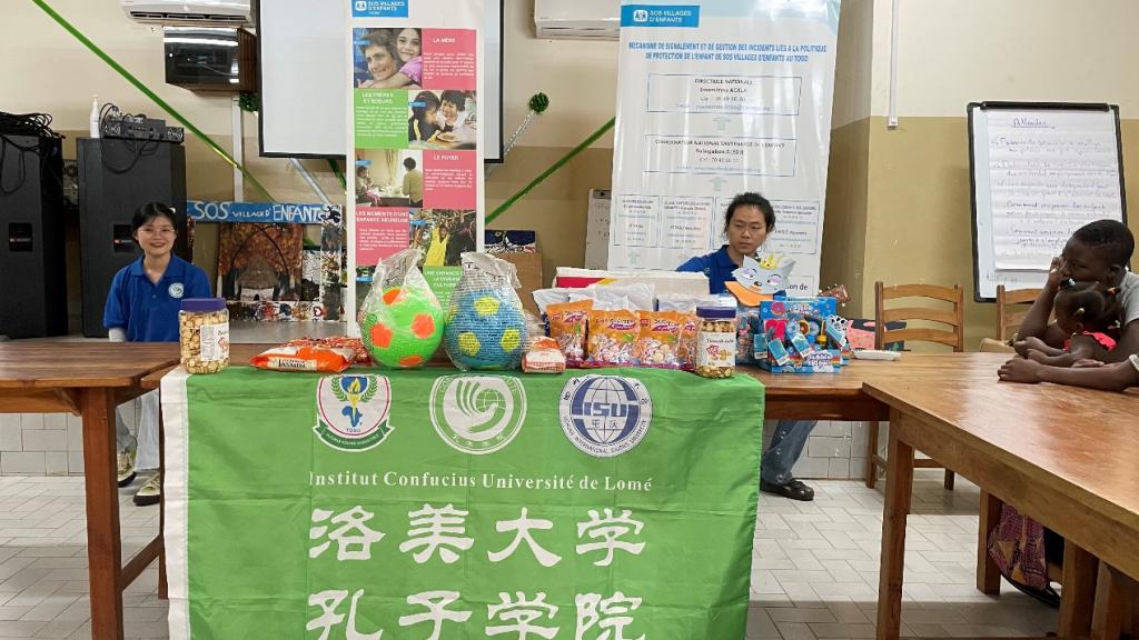当地时间6月17日,为了响应彭丽媛女士发起的“中非携手暖童心”关爱非洲孤儿健康活动倡议,在“国际非洲儿童日”到来之际,洛美大学孔子学院中方院长朱玉珊带领孔院全体中方教师走进洛美SOS儿童村,捐赠爱心物资,并且为孩子们带来了精心准备的中国文化体验活动。