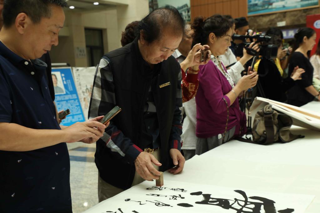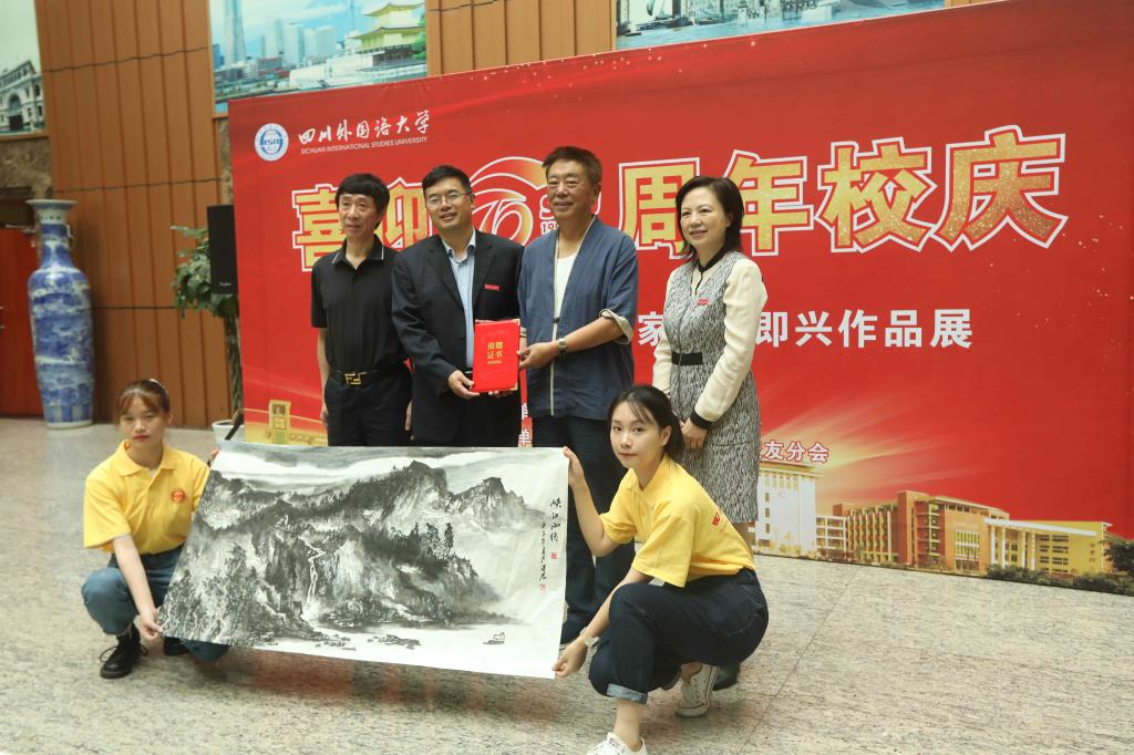 最后,邹渝、苟朝莉代表学校接受书画家们现场即兴作品的捐赠并向书画家颁发捐赠证书。