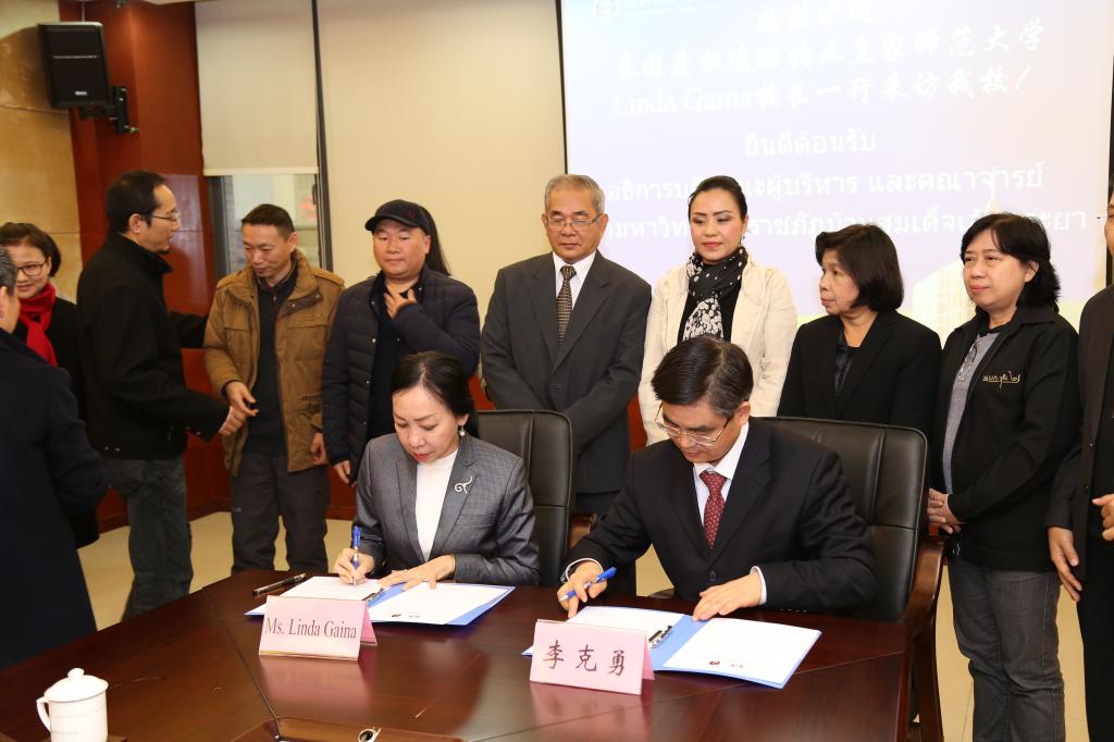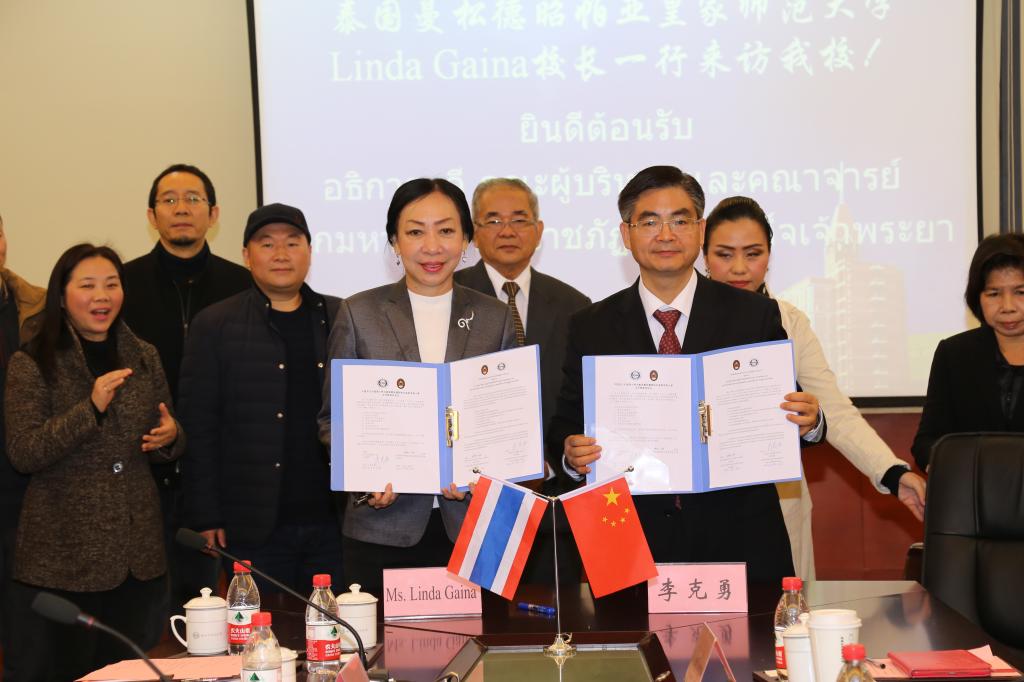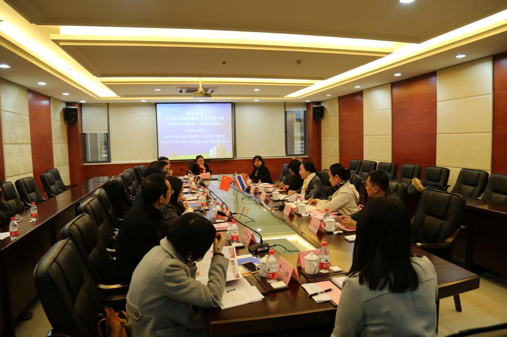 曼松德昭帕亚皇家师范大学项目主任Somchai Promsuwan、人文学院副院长Kulsirin Aphiravoradej、研究生院副院长KanakornSawangjarern、注册处处长Arunee Koowimon及我校中文系主任周文德、研究生院院长王仁强,东方语学院院长罗文青,留学生部主任张泽民、中文系副主任曹保平等相关负责人出席本次会议。