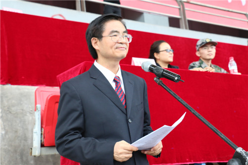 随后,李克勇校长上台致辞。李校长向同学们介绍了川外辉煌的历史,鼓励同学们发扬川外精神,心怀国家,为中华民族的伟大复兴贡献自己的力量。