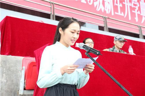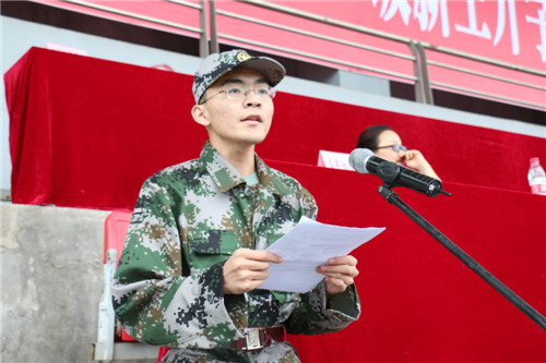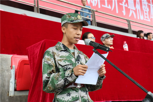 教育学院2015级新生贾东晓代表全体军训学员进行军训表态