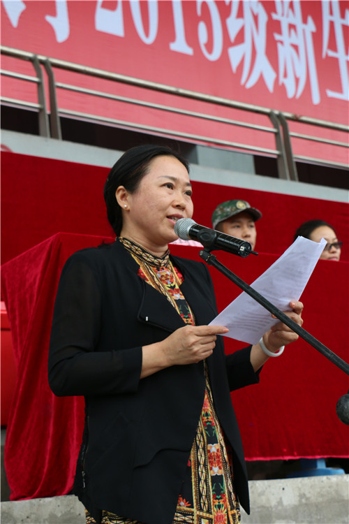在军训动员环节,郑白玲副校长发表军训动员讲话,向军训教官表示感谢,向2015级全体师生表示慰问。她强调,本科生军训有助于增强当代大学生的国防意识和家国情怀。对于这次军训,她提出了三点希望:“一、希望全体军训学员能够严守军纪,认真参训;二、希望全体教官能够认真施训,教育学生;三、希望全体老师以及后勤保障人员能够精心组织,通力合作。”