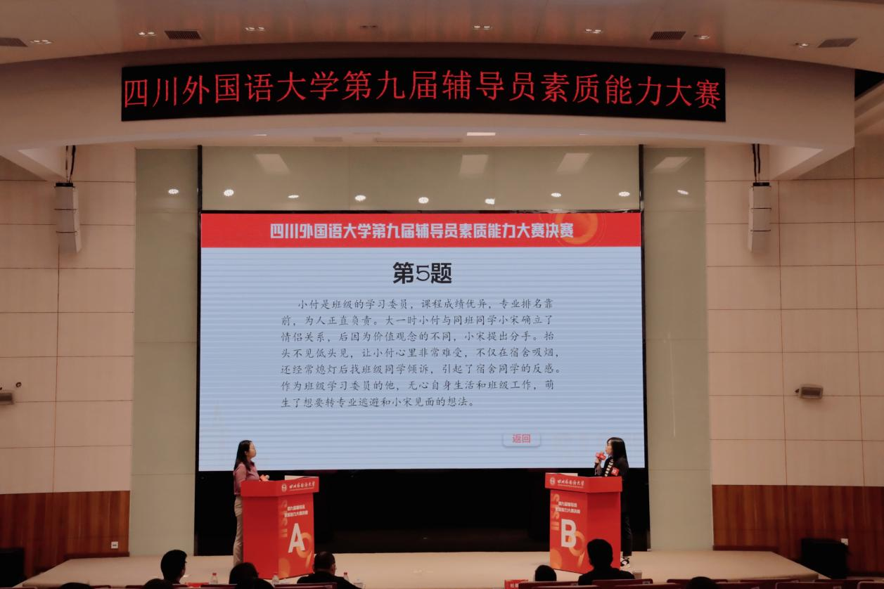 2023年3月21日,四川外国语大学第九届辅导员素质能力大赛决赛在东区宏文楼国际报告厅举行。