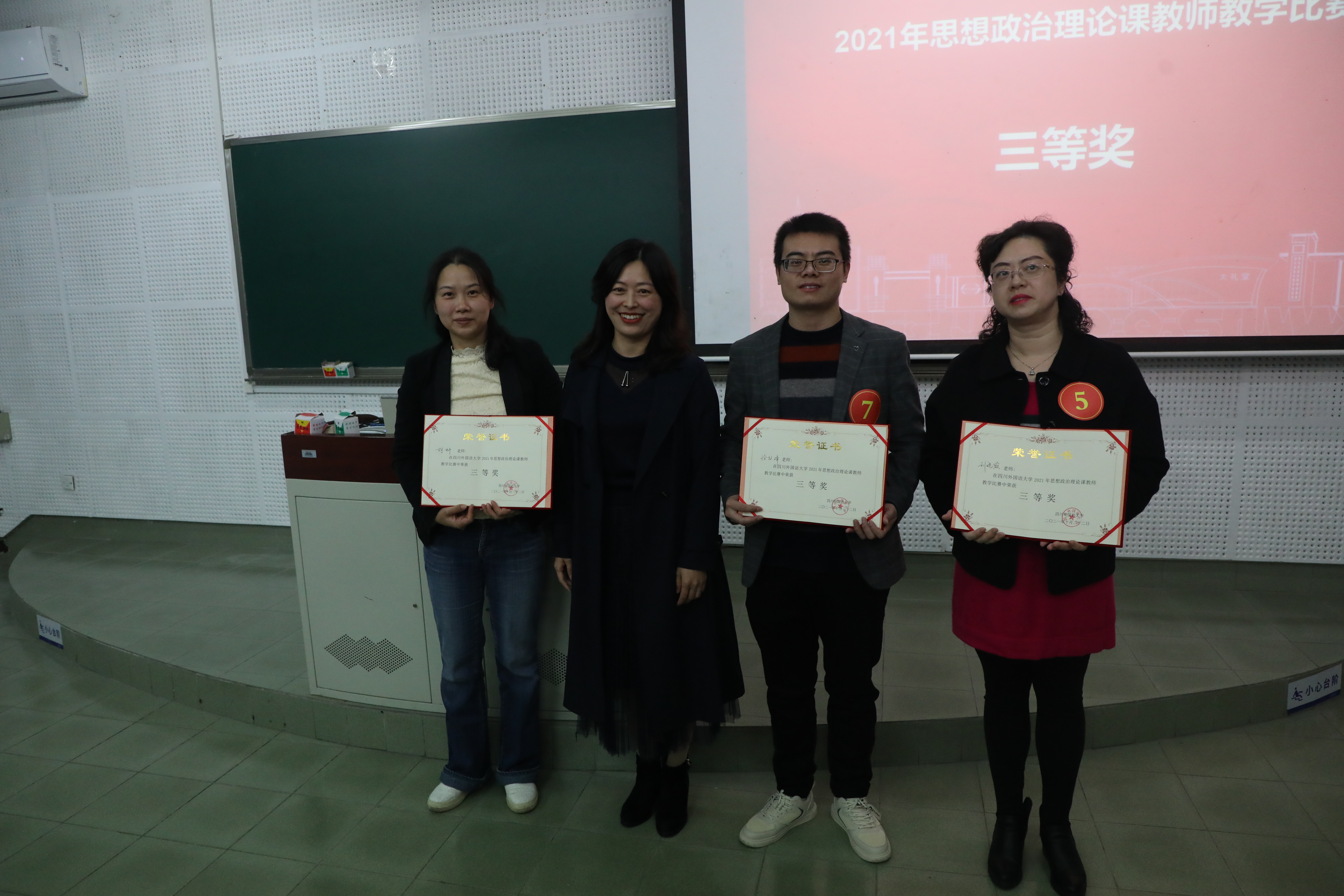 比赛开始前,余晓梅副处长首先致辞,肯定了此次教学比赛的举办,祝愿老师们在比赛中赛出风采、赛出水平。随后,来自马克思主义学院五个教研室、10位参赛老师依次进行20分钟的课堂教学展示。参赛老师将现代化的教学理念与传统教学模式完美结合,使课堂教学更加深入浅出、直观生动,精彩纷呈,展现了思想政治理论课教师扎实的教学基本功、积极进取的精神风貌和求实创新的教学态度。比赛采用现场打分的方式,经评选,曾利老师获一等奖;程波老师、孟颖老师获二等奖;刘晓薇老师、徐跃峰老师及胡妍老师获三等奖。