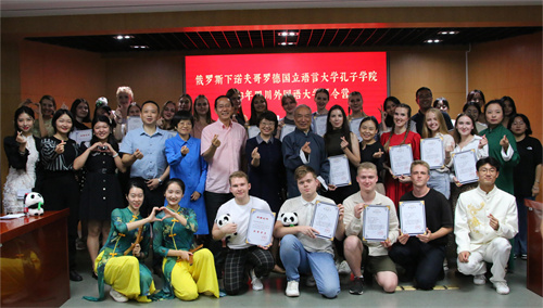 9月21日,由教育部中外语言交流合作中心主办、我校承办的俄罗斯下诺夫哥罗德国立语言大学孔子学院(简称下语大孔院)2023年“汉语桥”夏令营在我校正式闭营。我校国际处处长张幼斌、中文学院书记薛红、中文学院院长胡登全、国际学院书记张泽民、国际教育学院书记丁欢、下语大孔院俄方院长夏天、下语大孔院中方院长敬菁华、夏令营全体营员、教师、工作人员及志愿者参加了结业典礼。非物质文化遗产金钱板国家级传承人、国家一级演员丁长福教授出席结业典礼。