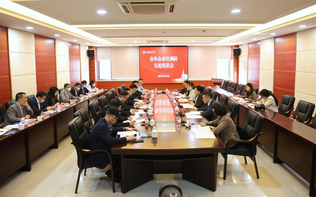 11月1日,市委外办主任、市政府外办党组书记、主任王雯带领市政府外办相关职能部门负责人一行到我校开展“学习宣传贯彻党的二十大精神,做好新时期外事工作”专题调研。我校党委书记邹渝、校长董洪川、副校长祝朝伟和部分二级单位负责人参加调研。