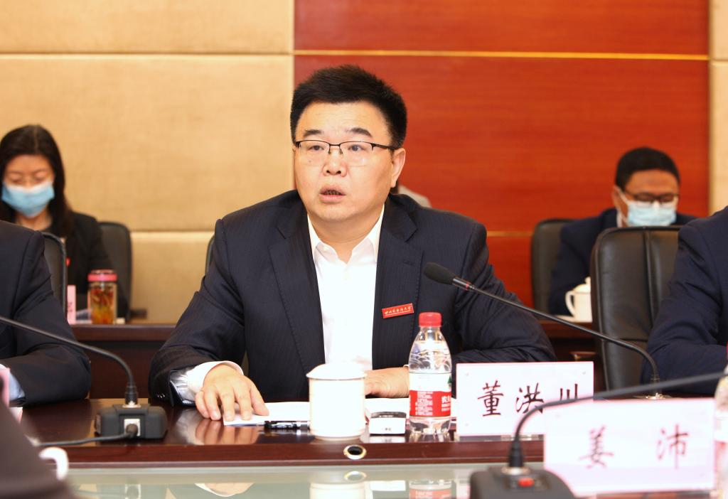 董洪川介绍了我校的办学历史、语种分布、国际化定位、国际化建设等方面的情况。他表示,川外作为一所拥有72年办学历史的外国语大学,始终坚持国际化办学特色。近年来,学校紧密结合国家重要战略,努力提升国际化建设水平,希望市外办一如既往支持川外的发展。