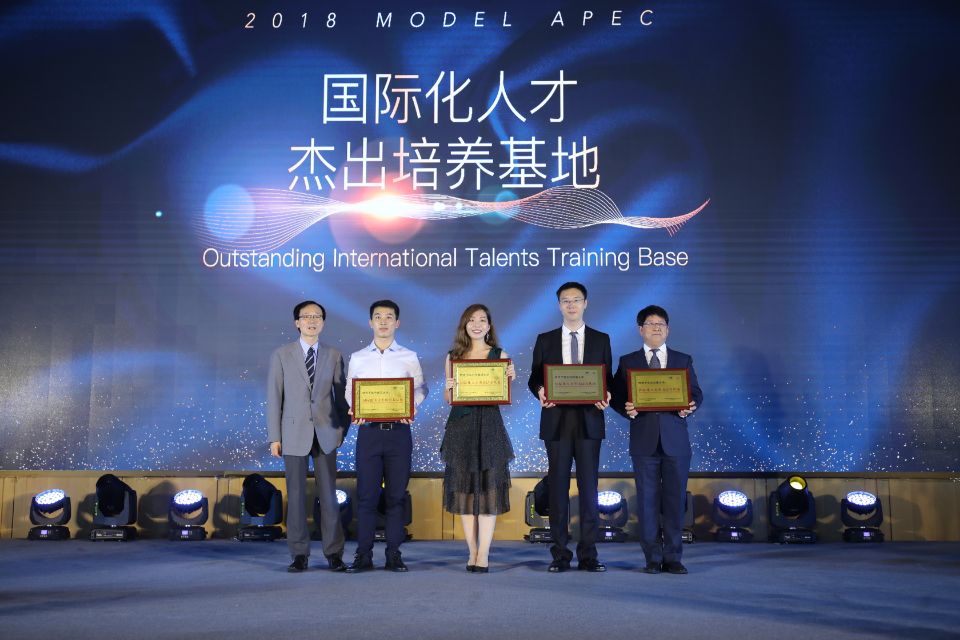 亚太青年APEC大会组委会为我校颁发“国际化人才杰出培养基地”奖牌