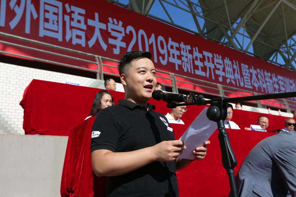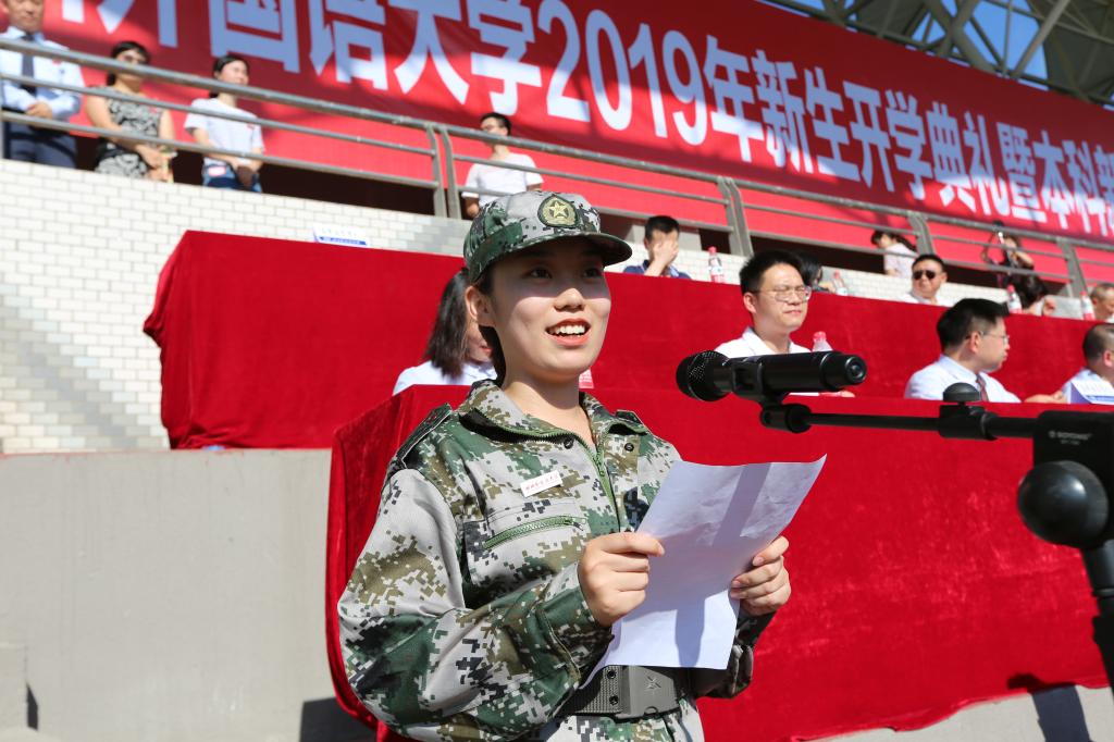典礼上,本科新生代表新闻传播学院刘心怡在发言中表示,将向历代优秀的川外人学习,坚定理想信念、厚植爱国主义情怀、加强品德修养、增长知识见识、培养奋斗精神并增强综合素质,不懈奋斗,开拓创新。博士研究生新生代表英语学院文玲霞用“一道风景、一份担当、一种新境界”来概括自己求学的深刻感悟。来自翻译学院的研究生冷岳作为在校生代表深情回忆了自己的川外生活,表达了对川外的感恩与热爱,并为新生们给出建议。教师代表国际关系学院杨金龙向新生们分享了对于高校学习生活的理解与感悟,表达了对同学们殷切的希望。校友代表98级校友邵璐回忆起在母校的生活点滴,希望全体新生能够珍惜在校时光,努力学习。罗武建表示,川外有着浓厚的红色基因,悠久的军校传统,希望同学们坚定信心,在军训中增强国防意识,增强体魄。