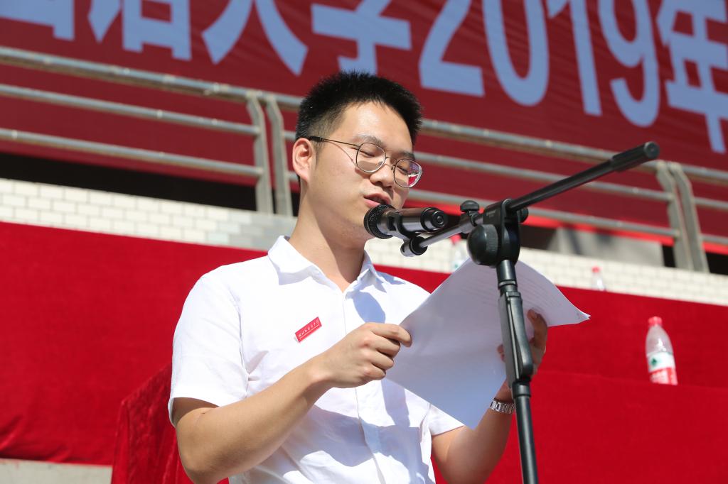 李克勇校长在致辞中指出,四川外国语大学是一所具有光荣革命传统的大学,在老一辈无产阶级革命家的亲关怀和指导下创立,经过不断发展的发展,才有了如今的规模与成就。他总结了历代川外人取得的光辉荣誉,并表示在五四运动100周年,新中国成立70周年之际,学校也将迎来70周年校庆。他希望同学们能够肩负起实现中华民族伟大复兴的中国梦的新使命,要把个人的理想与抱负同国家的荣辱、民族的命运结合起来,实现“国家兴亡,匹夫有责”的新担当,成为优秀的社会主义接班人。最后,他希望新生们发扬“团结、勤奋、严谨、求实”的校训和“”守责、求实、开放、包容”的川外精神,树立健康向上的人生态度,志存高远,勇敢应对新的挑战,牢固树立正确的人生观和价值观;在探索未知和创新实践中获得乐趣、获取知识,在学习和研究中,开阔视野,努力使自己成为国家发展、社会进步所需要的中国特色社会主义的建设者和接班人。